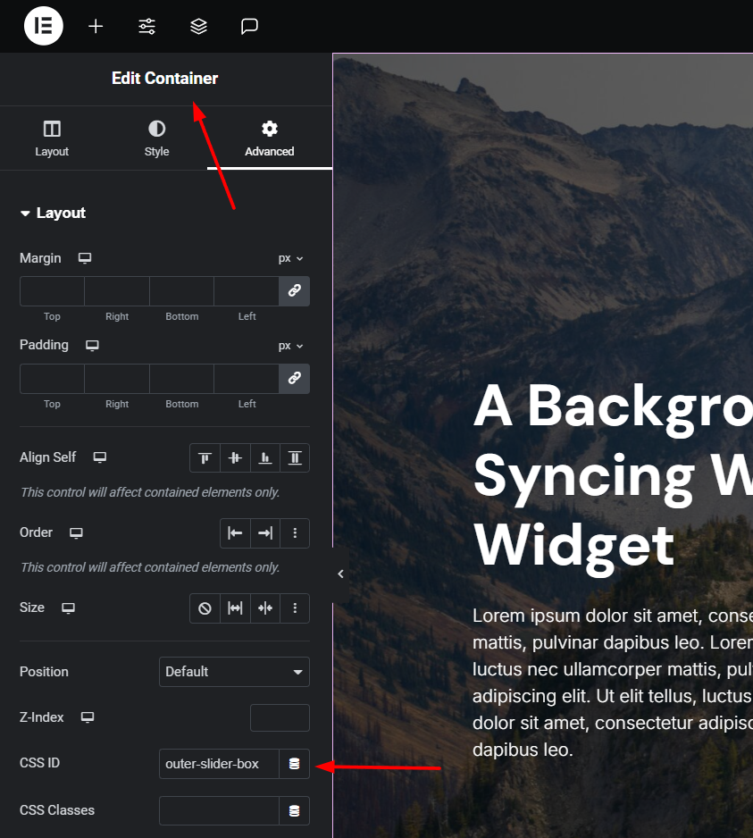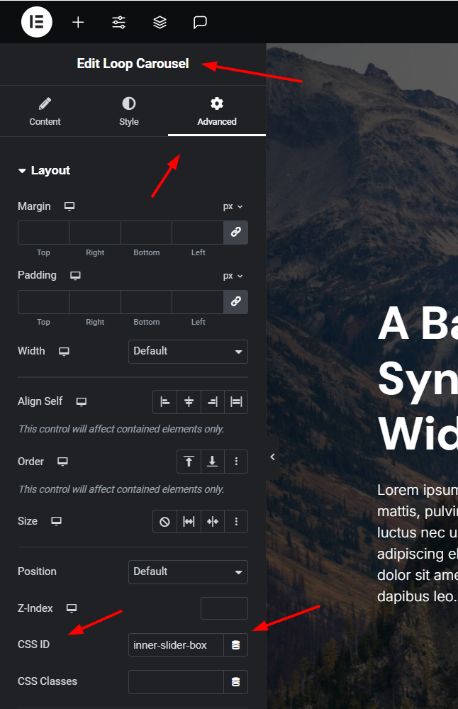 - Now you have added CSS IDs to both your primary container and the loop carousel widget itself.