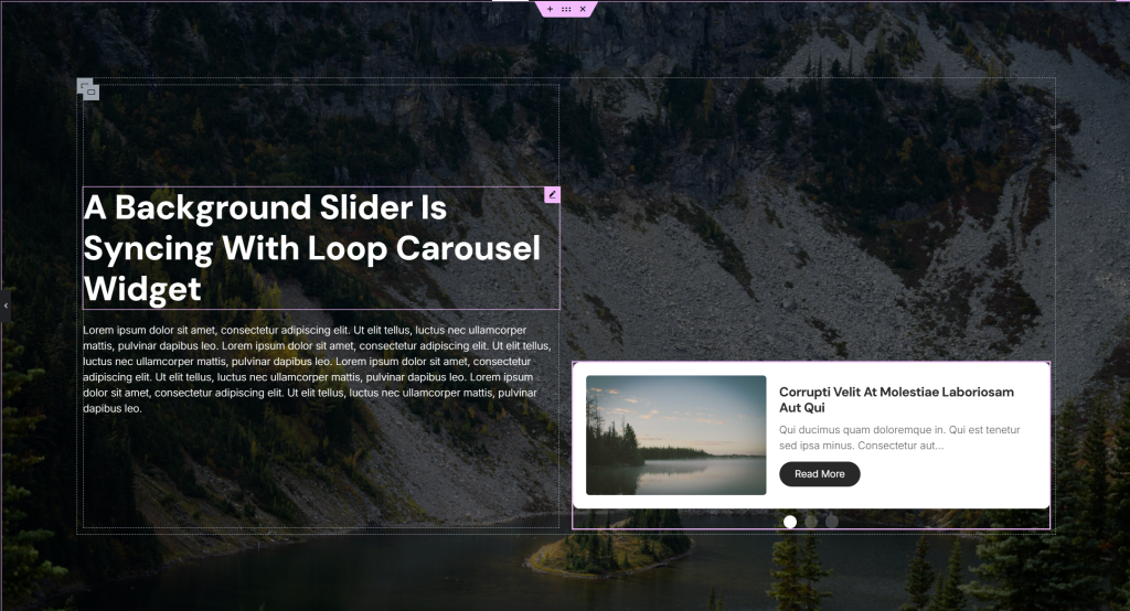 You will see that if you click on the navigation dots of the Loop Carousel Widget, the background slides are going to change along with them.