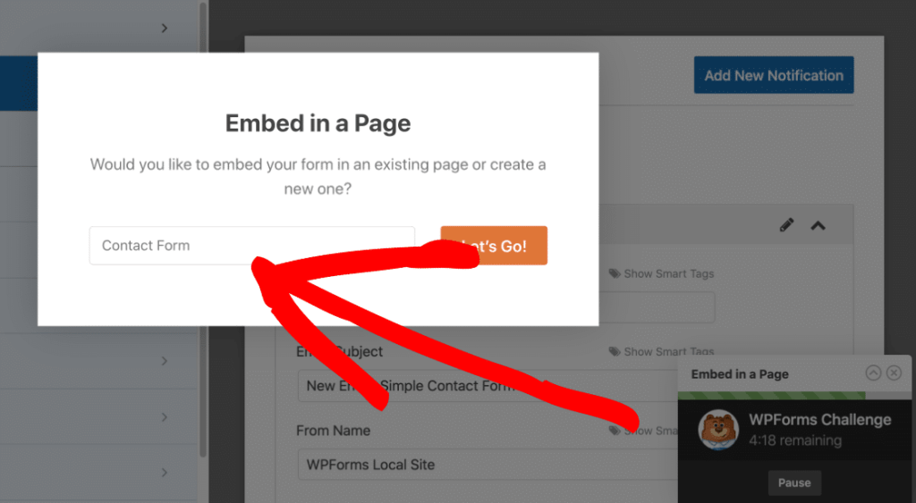 - WPForms will ask you to either create a new page or embed the form to an existing page on your WordPress website.